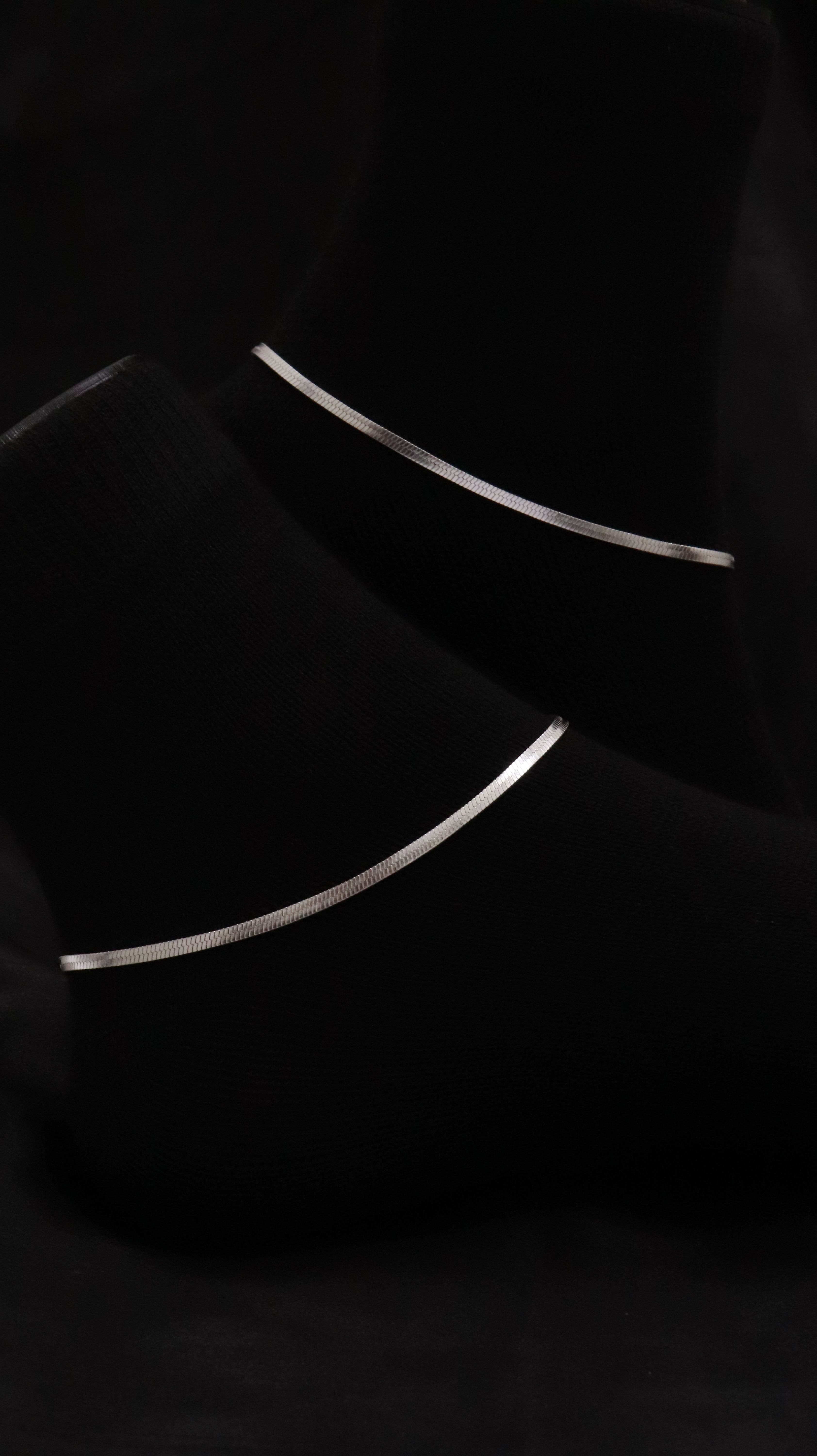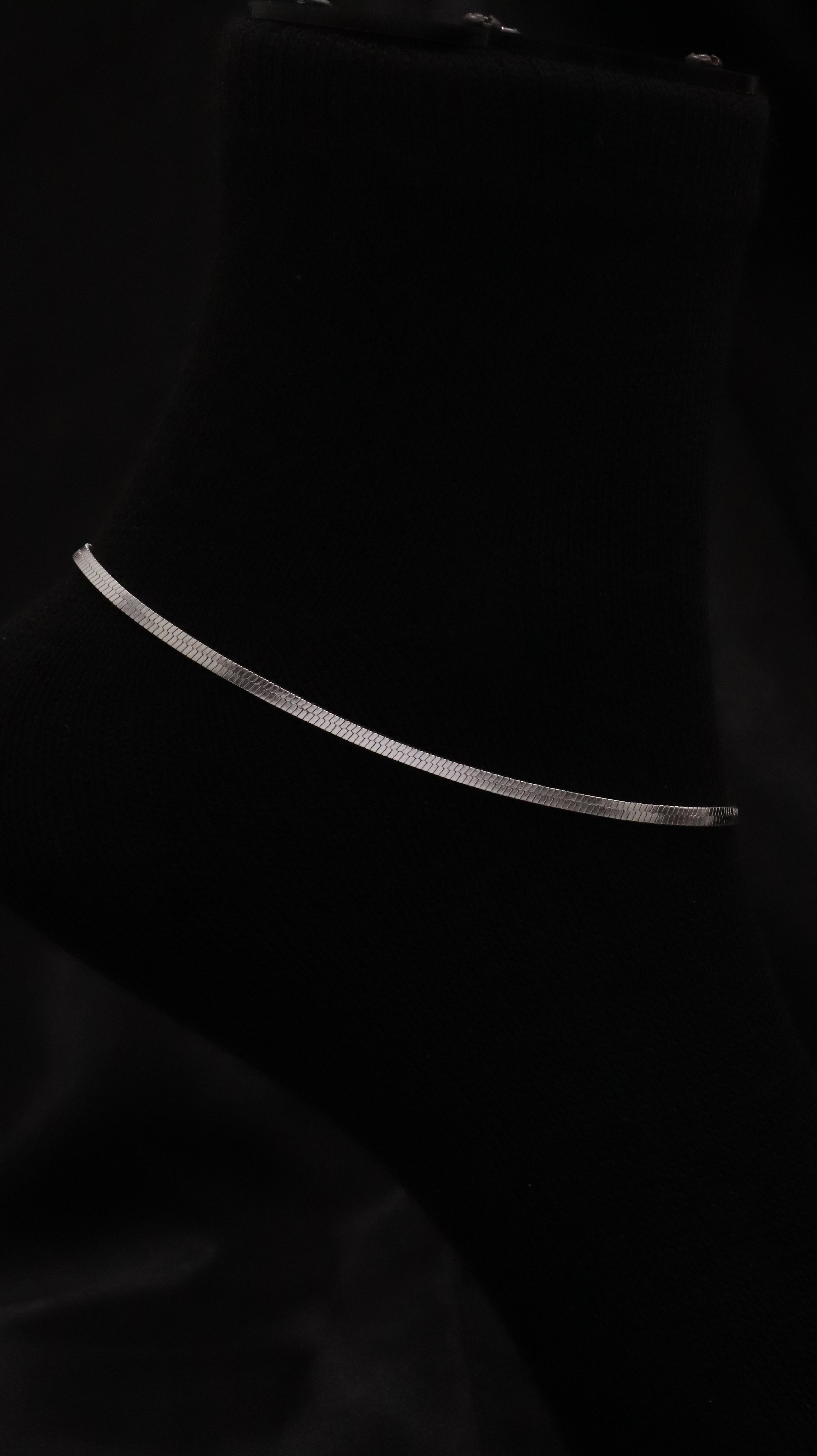 Design: Minimal flat silver chain.