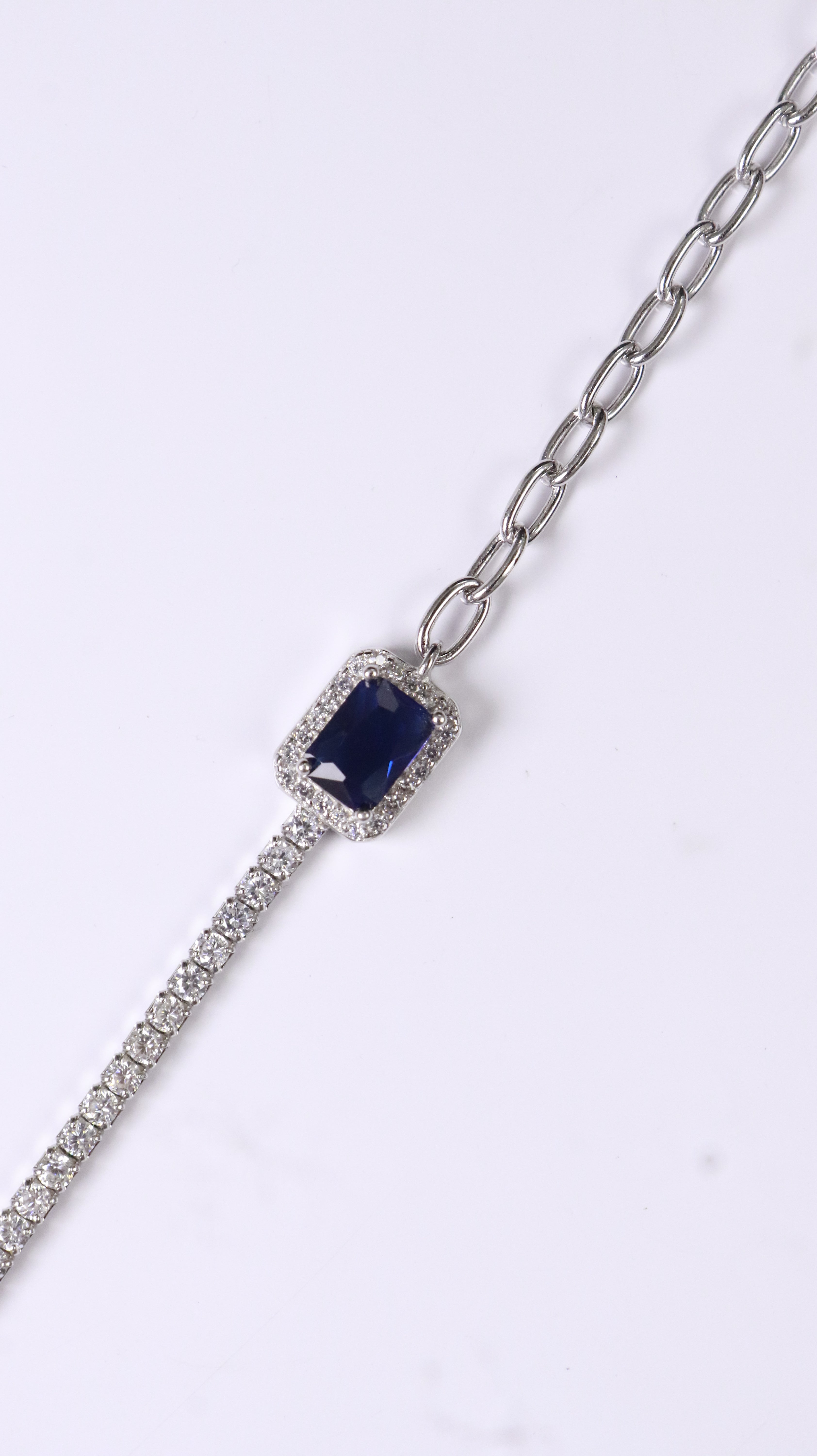 92.5 Sterling Silver Blue Stone Dual Chain Bracelet