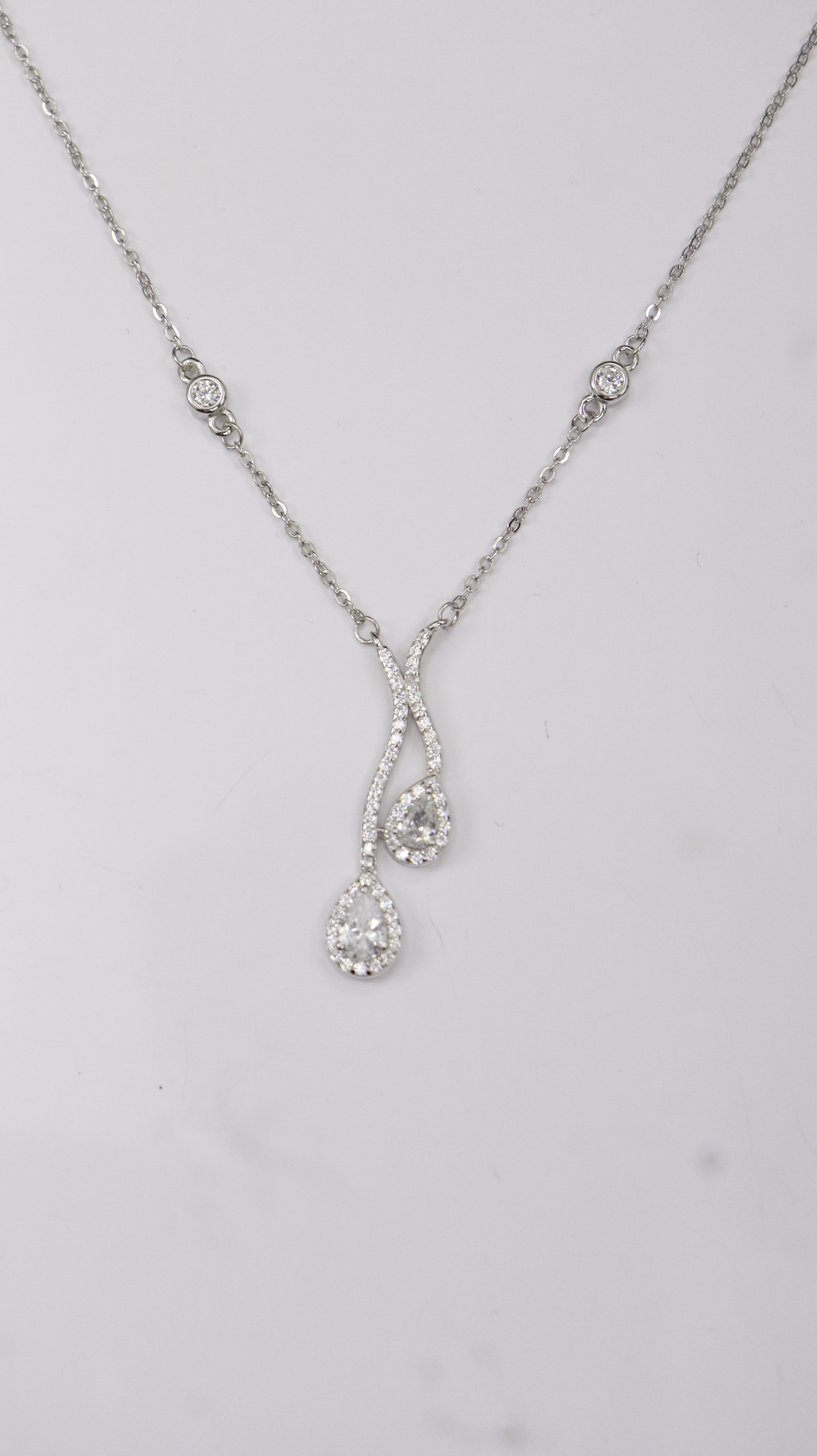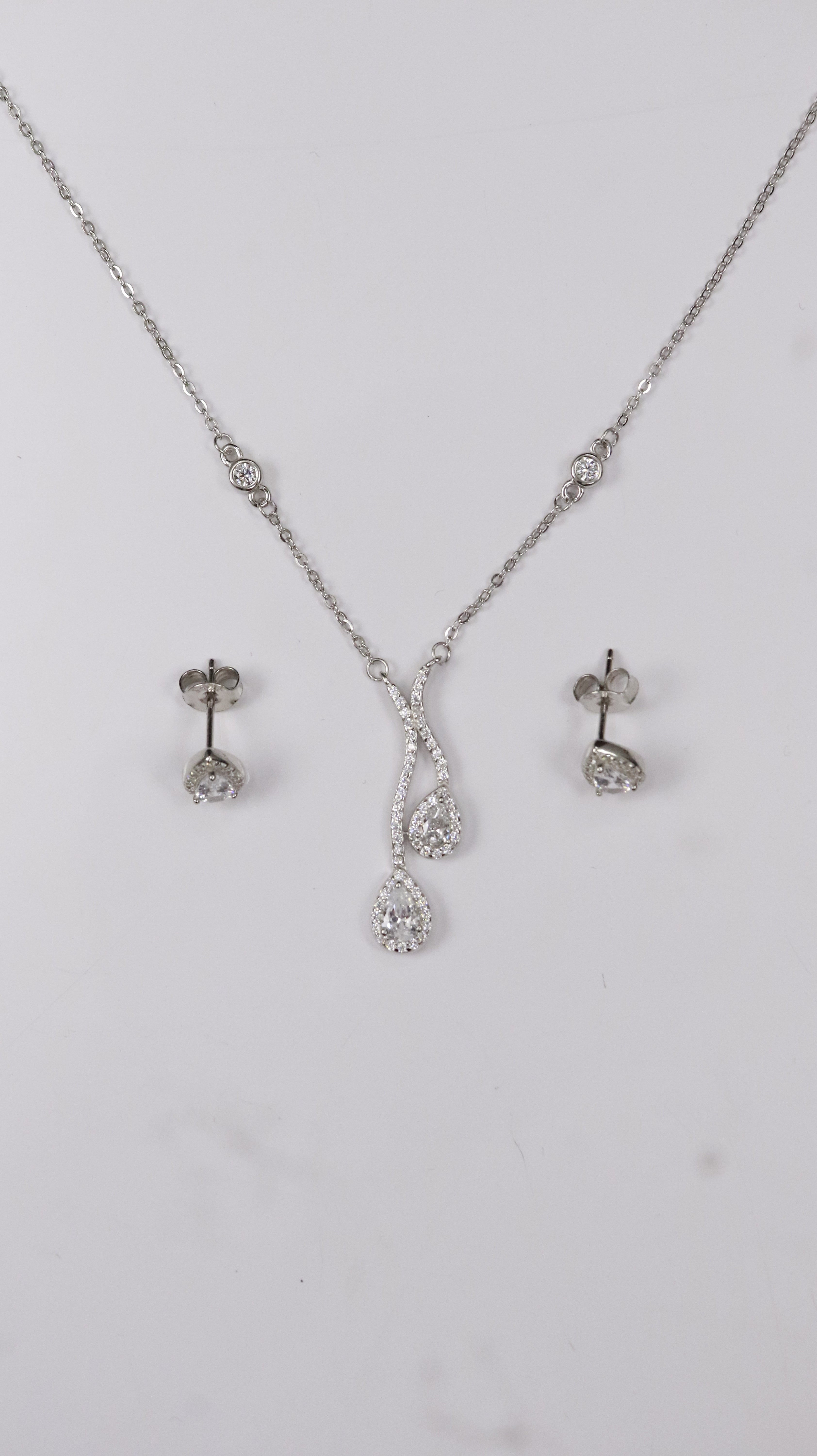 This pendant set comes with a flowing twin-drop design, finished with a teardrop