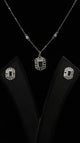 This pendant set has a clean rectangular bar design with tiny sparkles on one side
