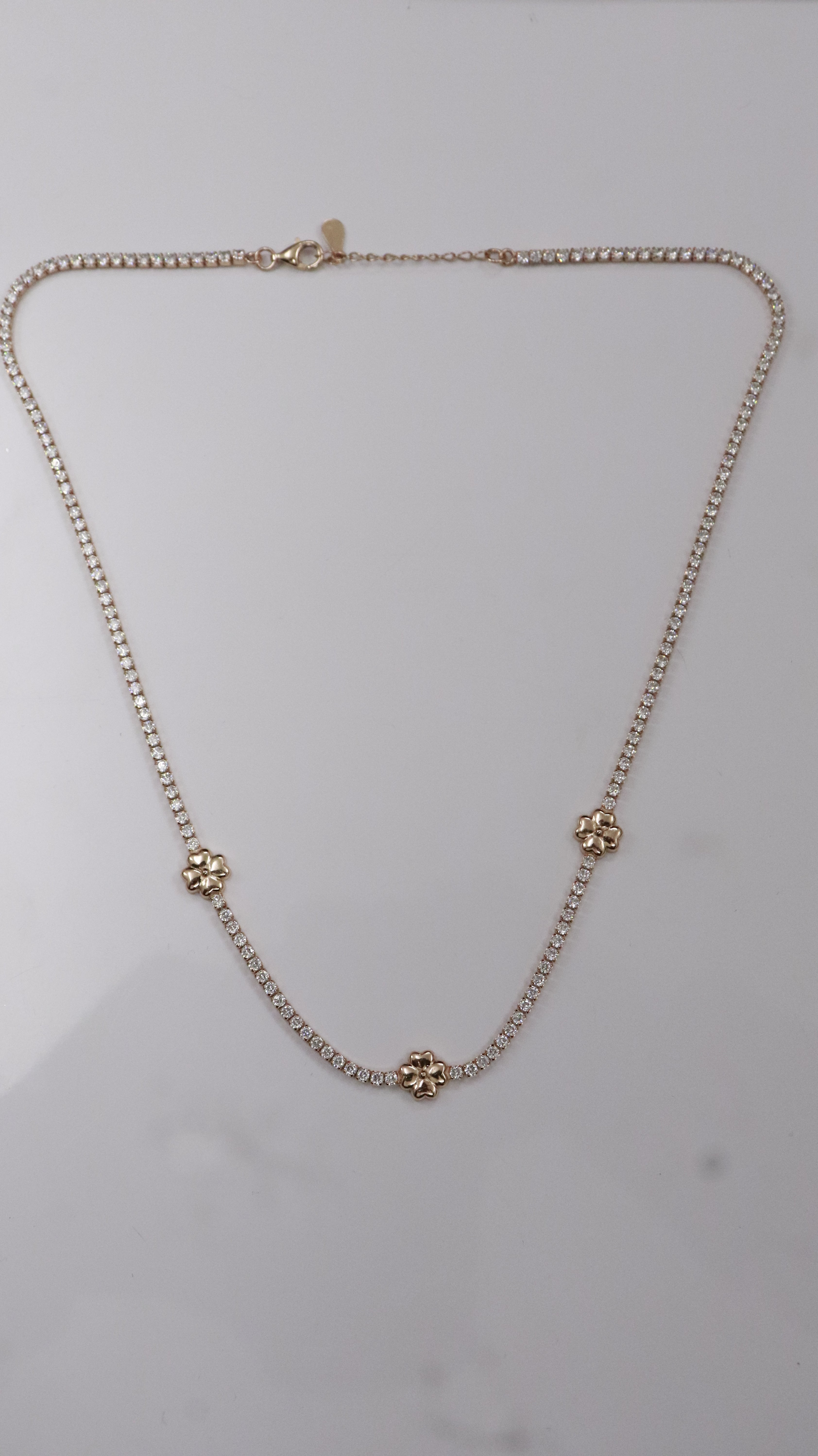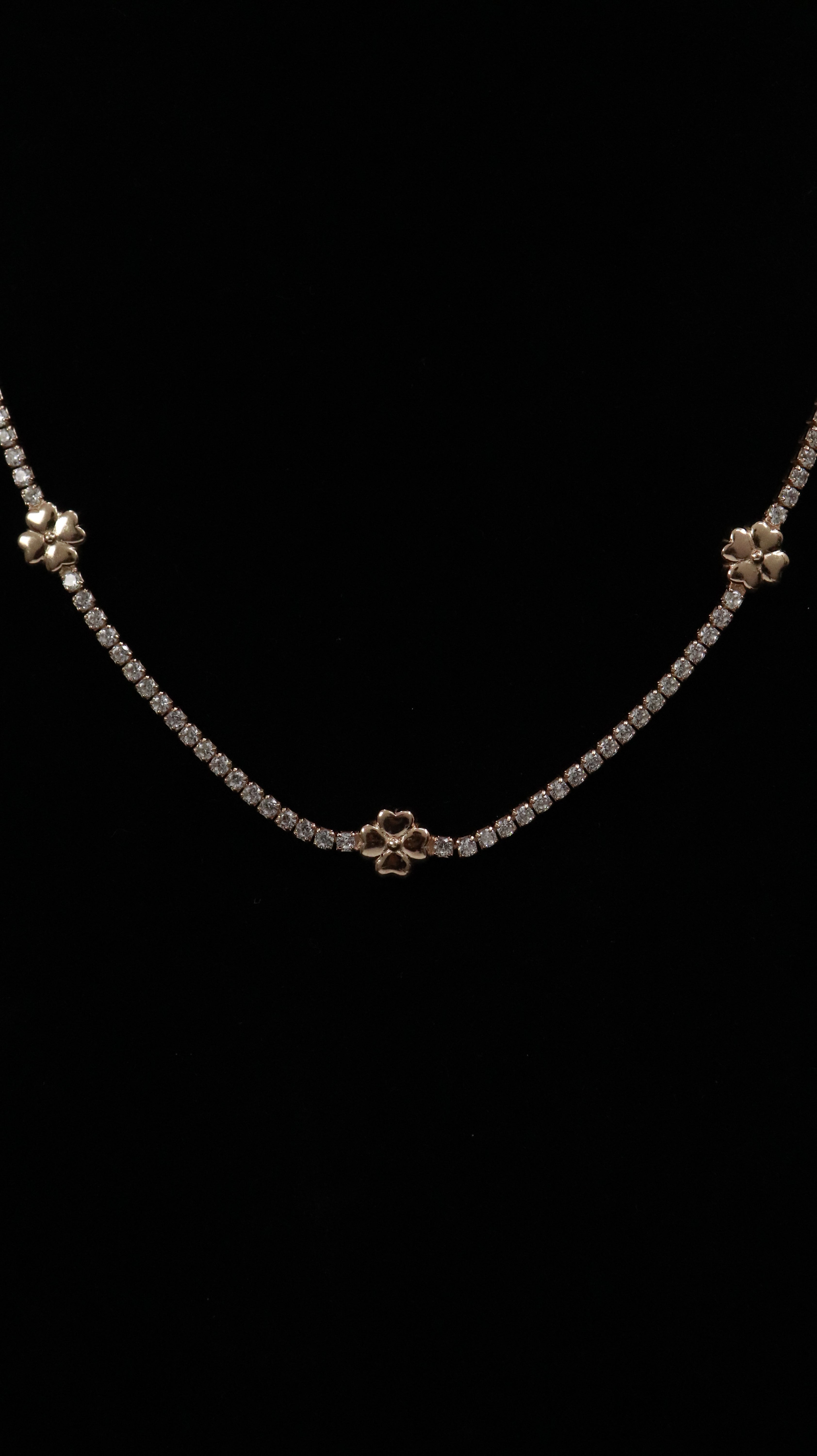 This chain pendant has a delicate floral motif placed beautifully along a sparkling line of stones