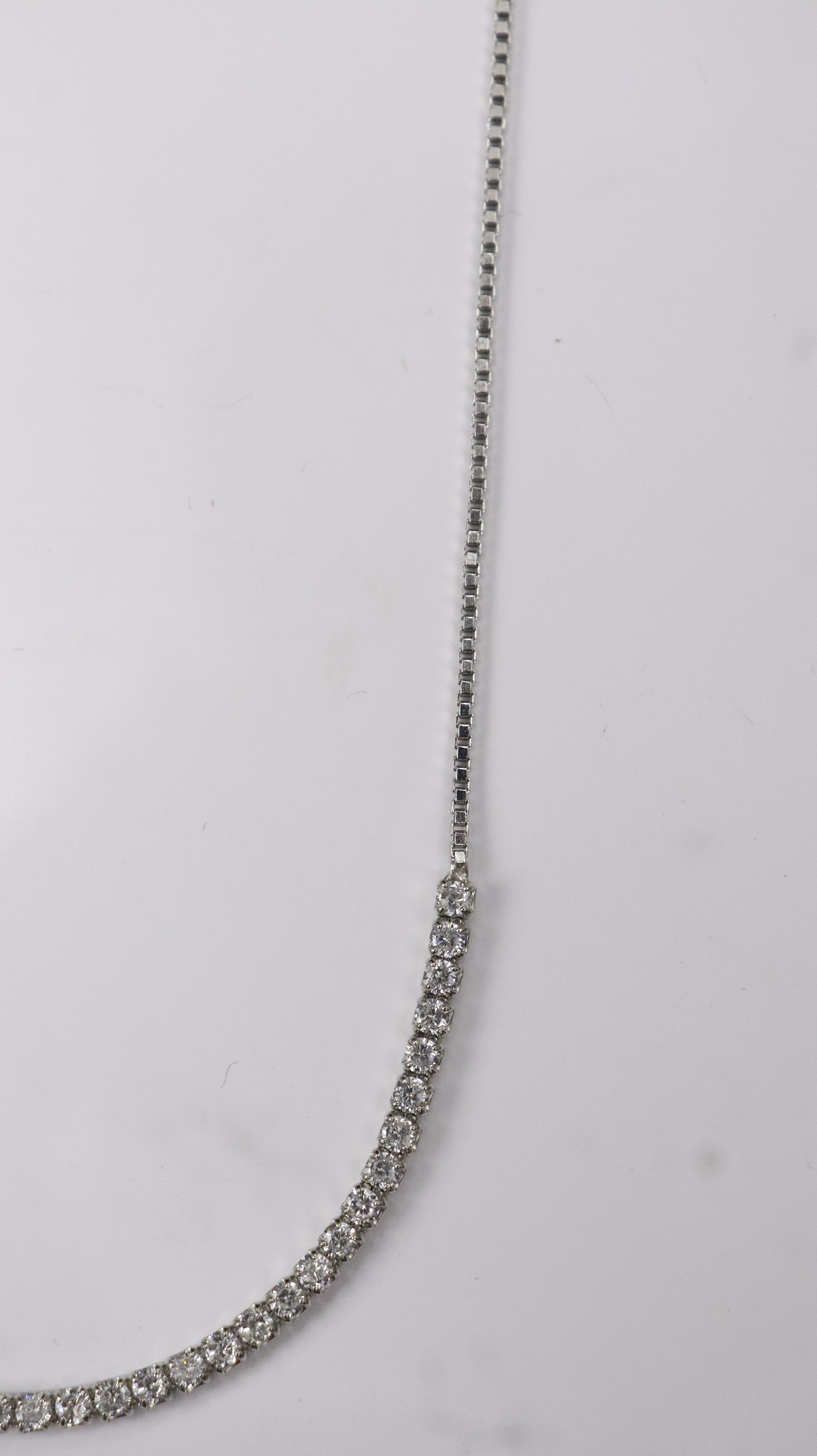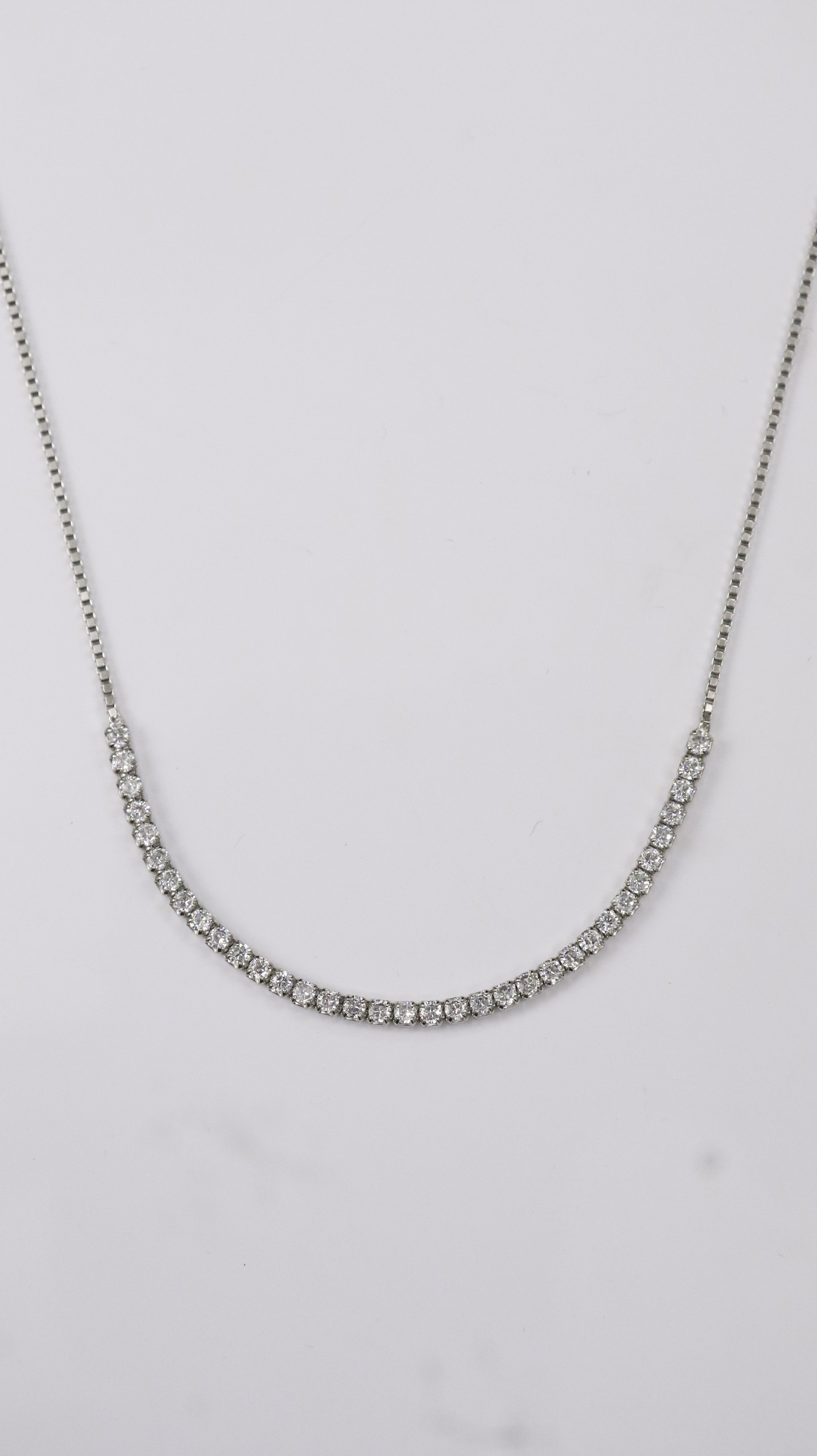 This chain pendant features a clean, curved line of tiny sparkling stones set beautifully in 925 sterling silver.