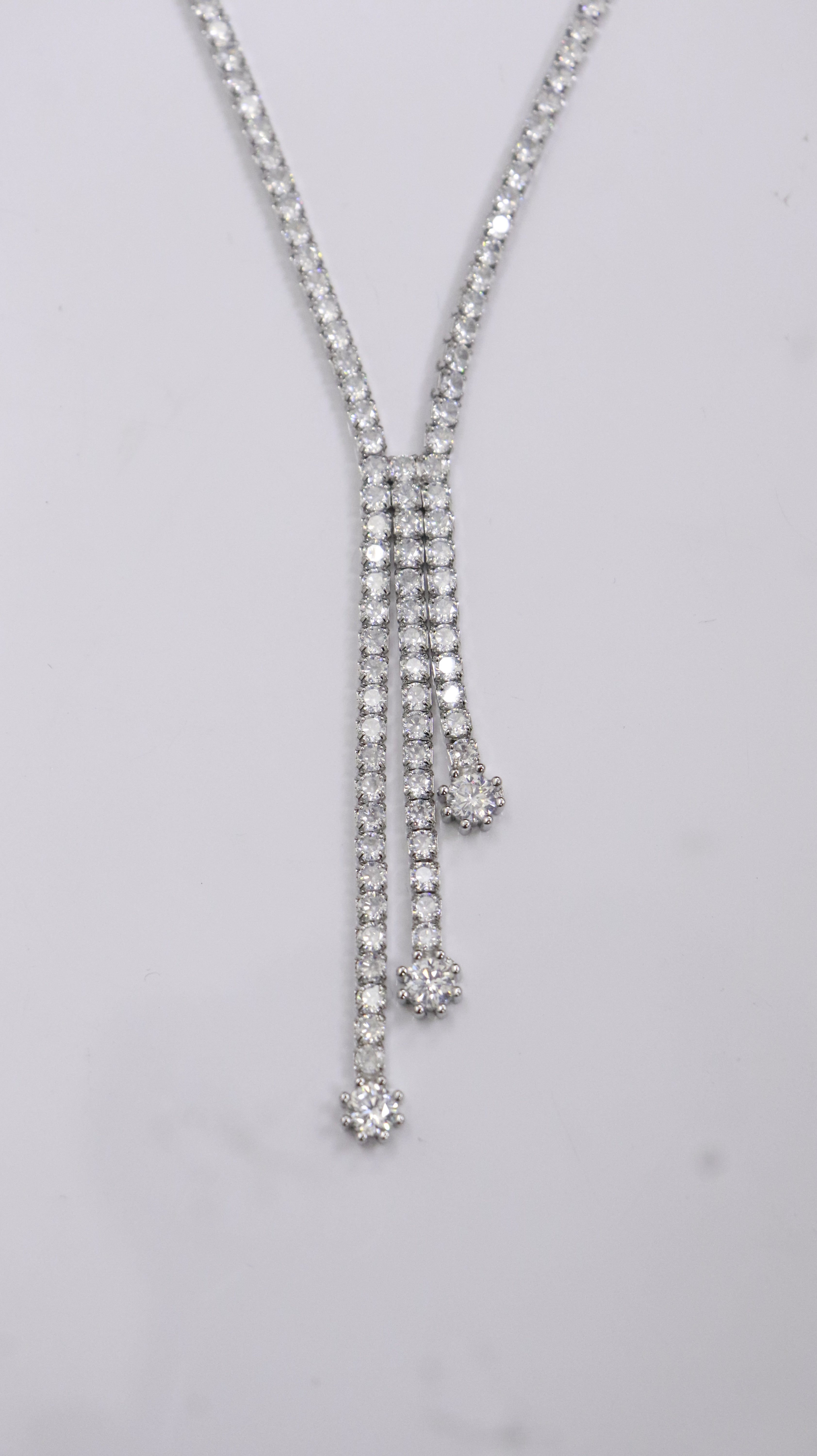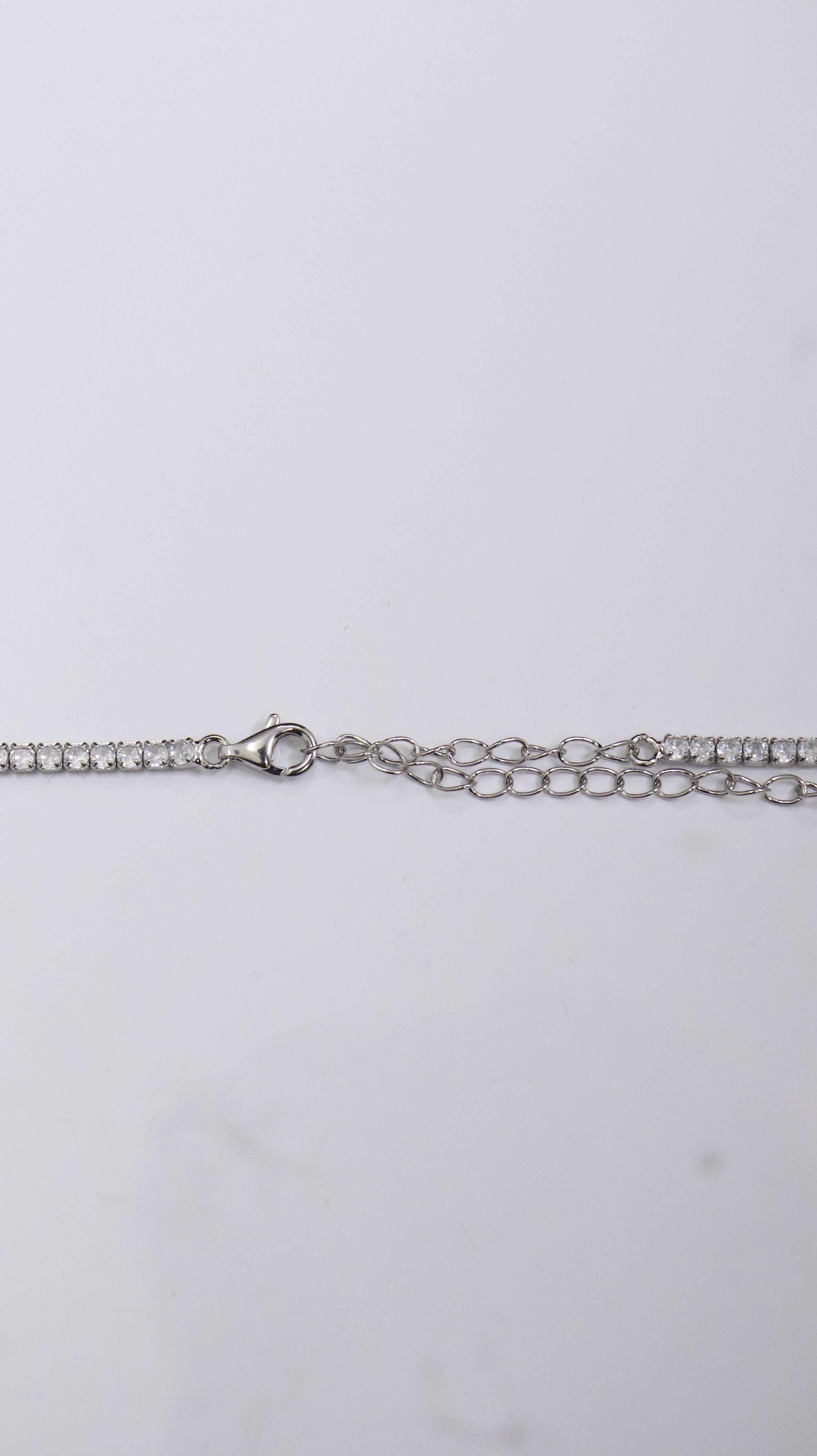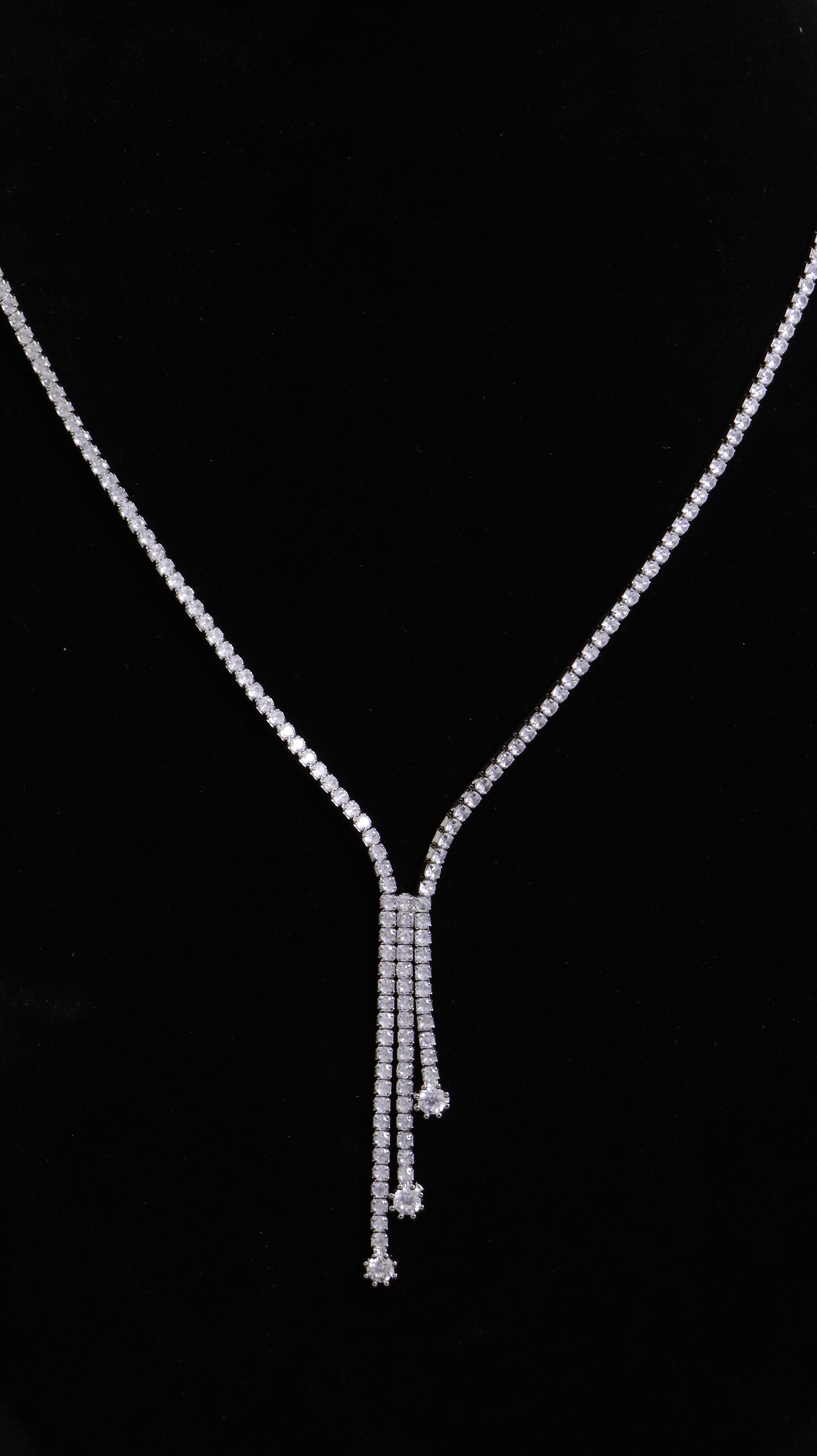 This chain pendant has a classy drop-style design with three slim sparkling lines