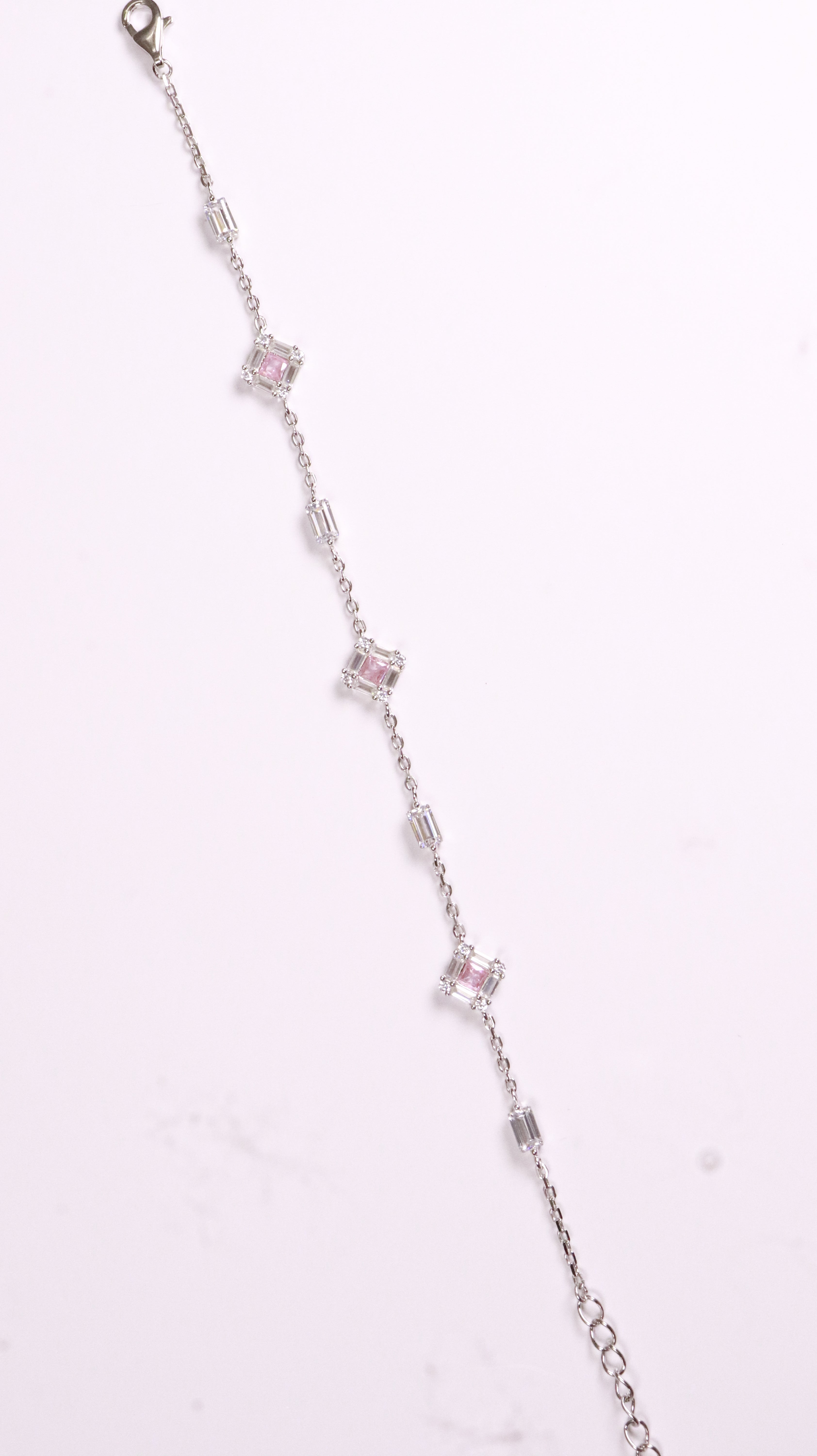 Design: Bracelet with square pink stones + heart-shaped pink studs