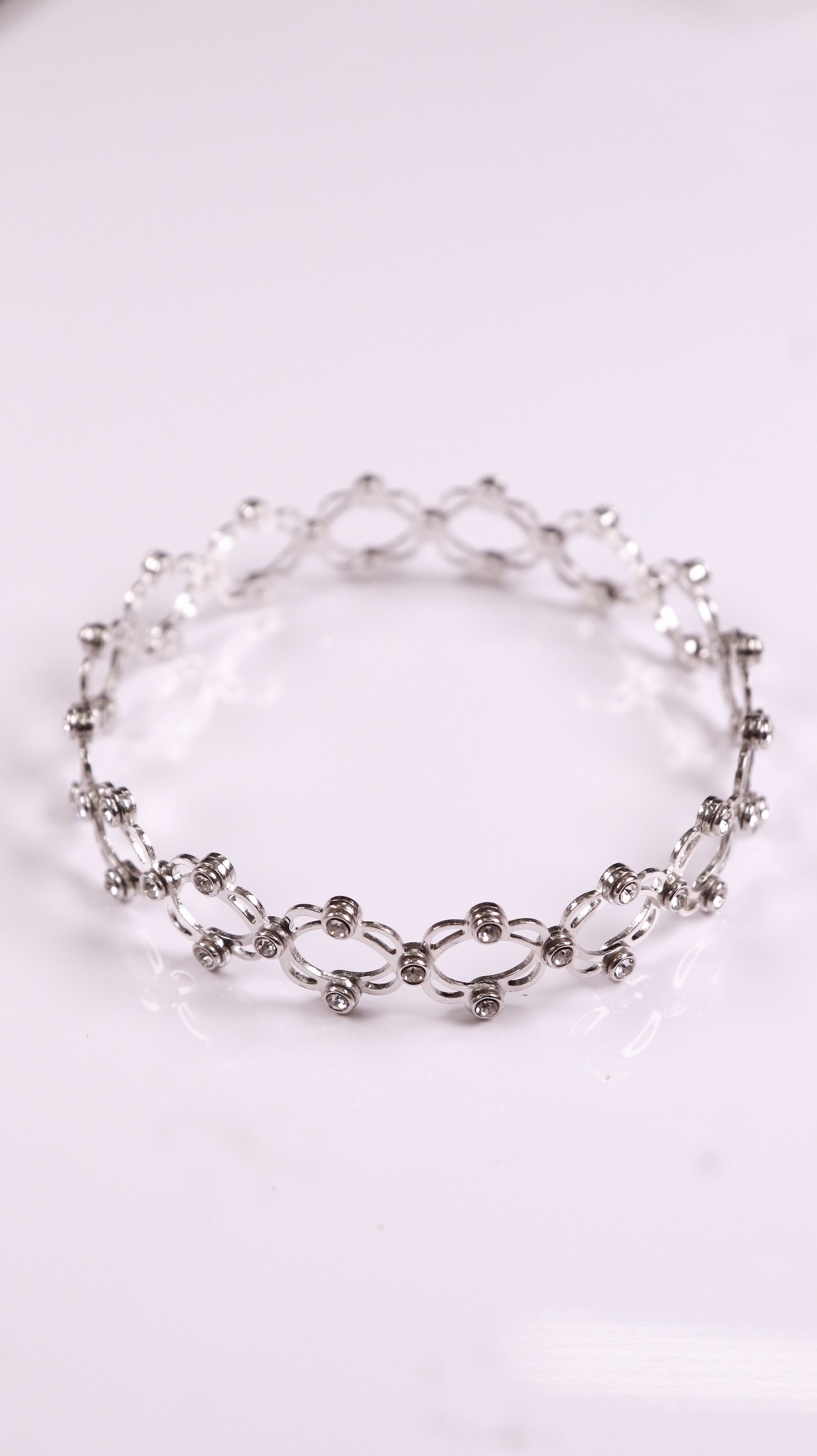 This is a cool ring-bracelet made in 925 silver. You can wear it as a bracelet or twist it into a ring. The linked loop design with tiny stone detailing gives it a stylish and modern look. Light, shiny, and perfect for daily wear.