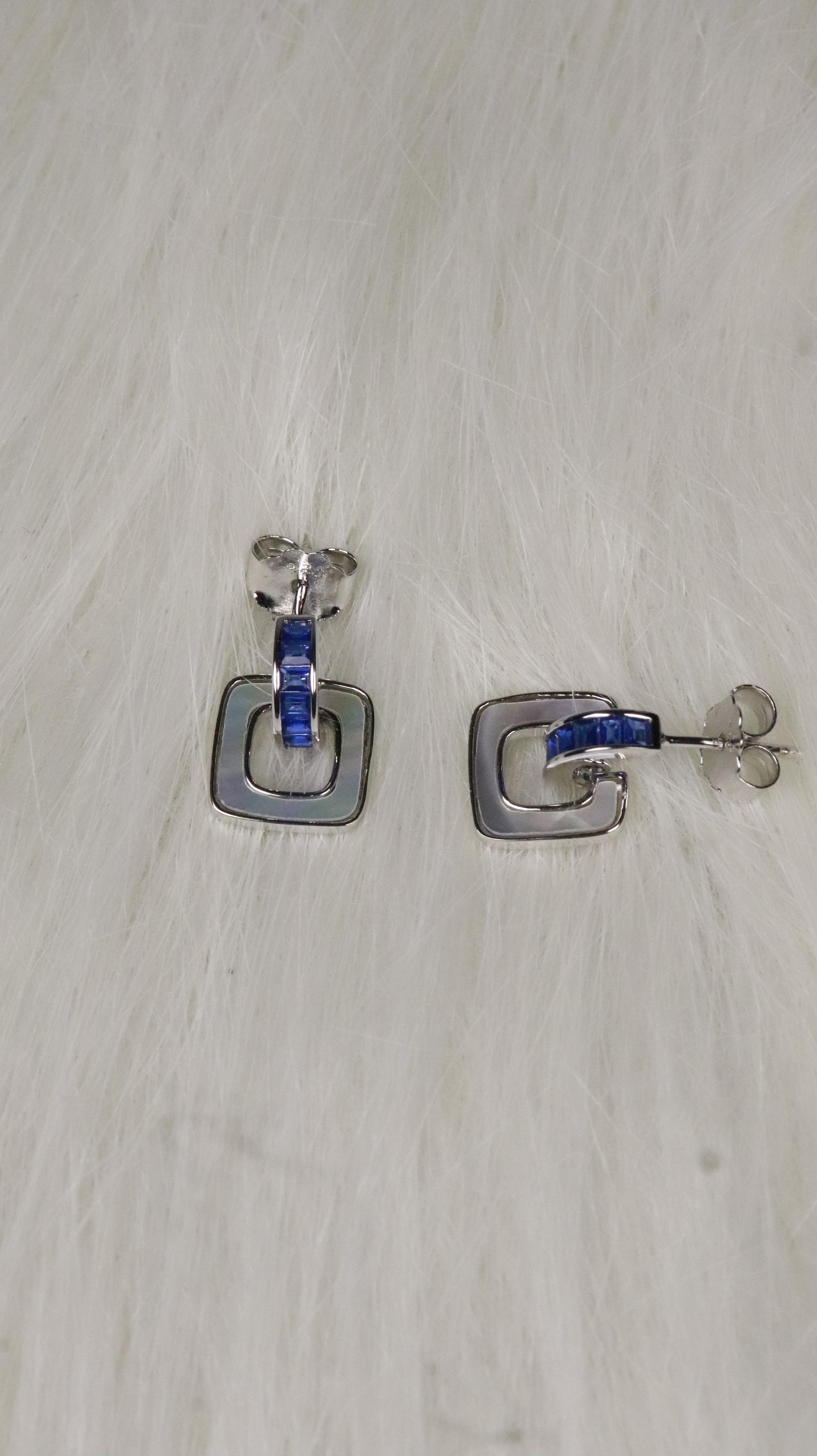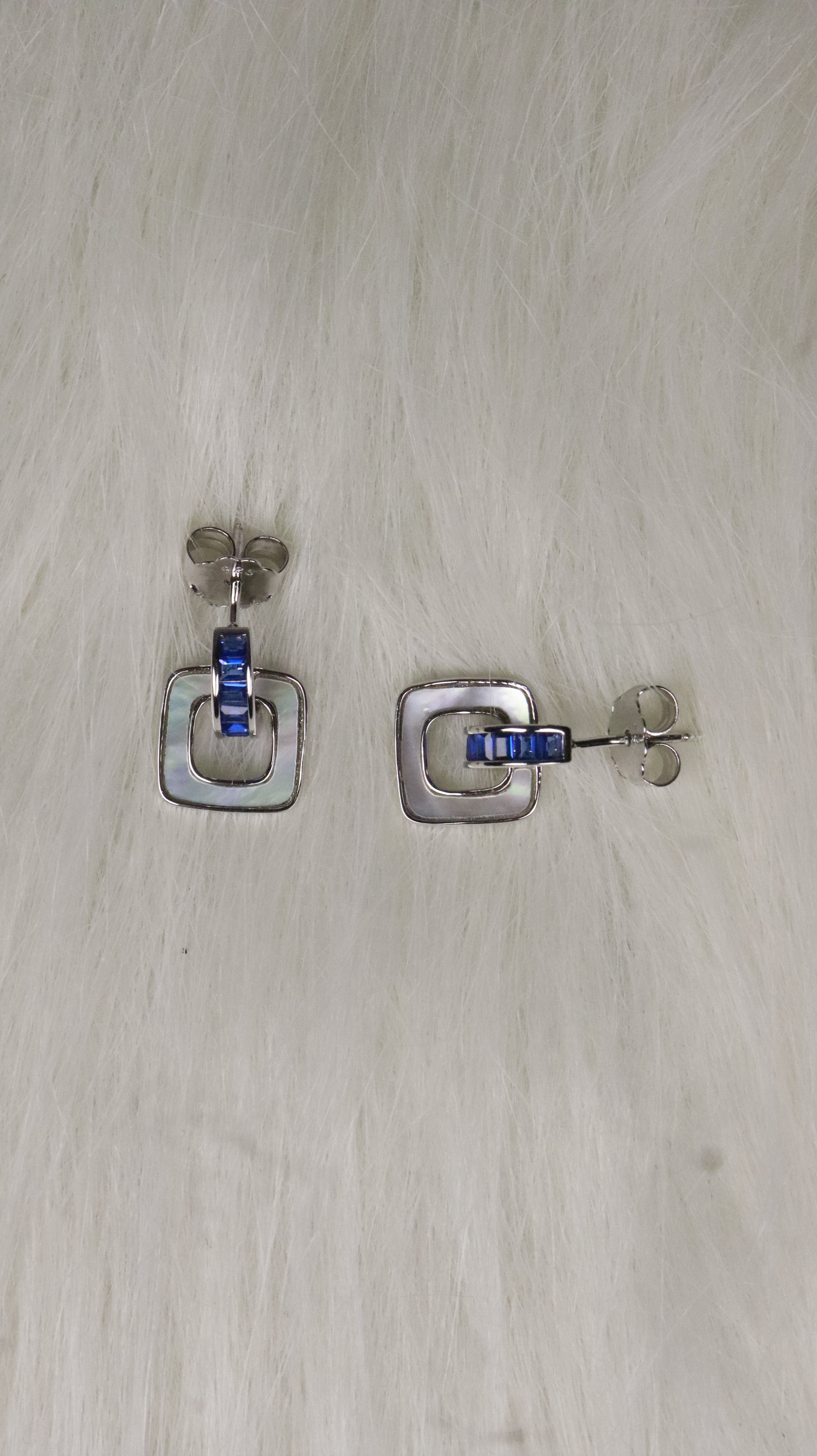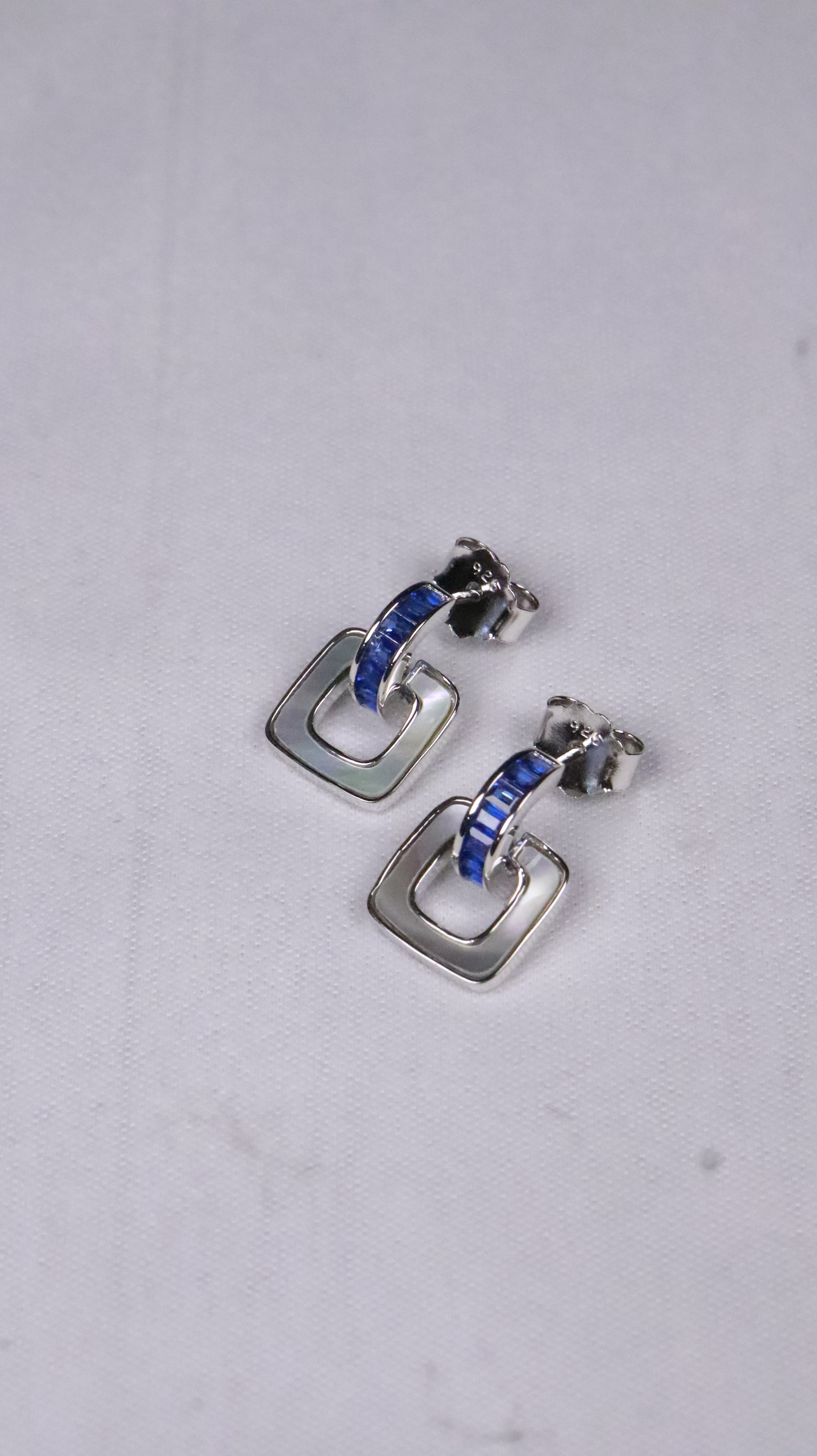 Made with 925 sterling silver. Cool square design and a touch of blue sparkle make it