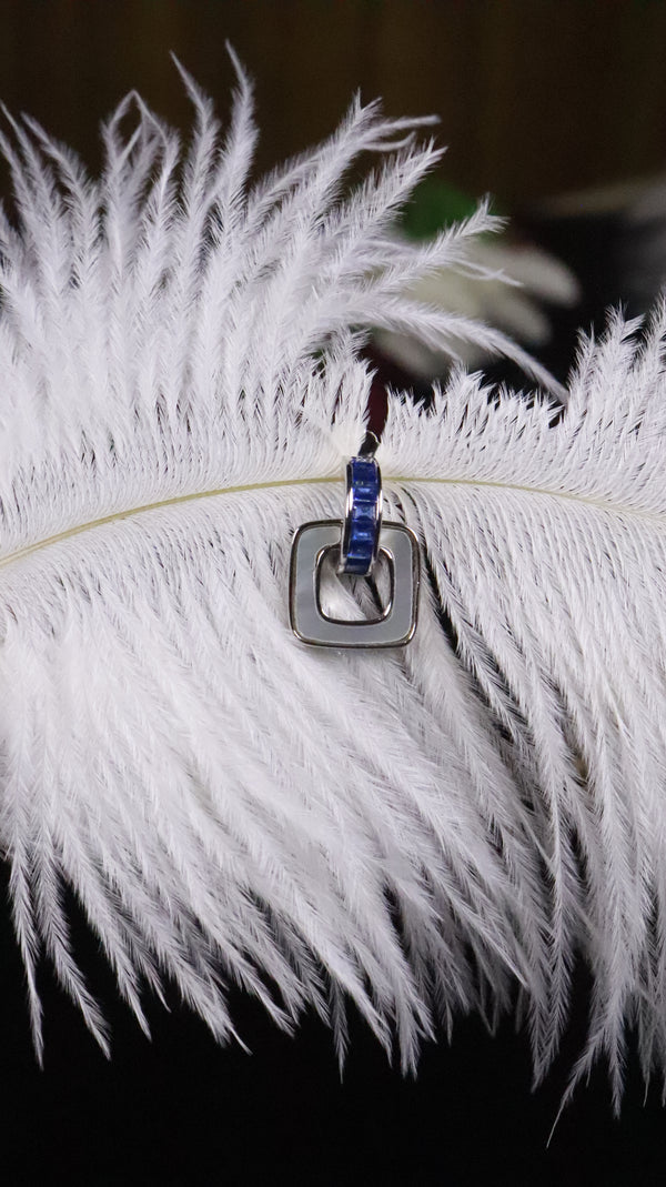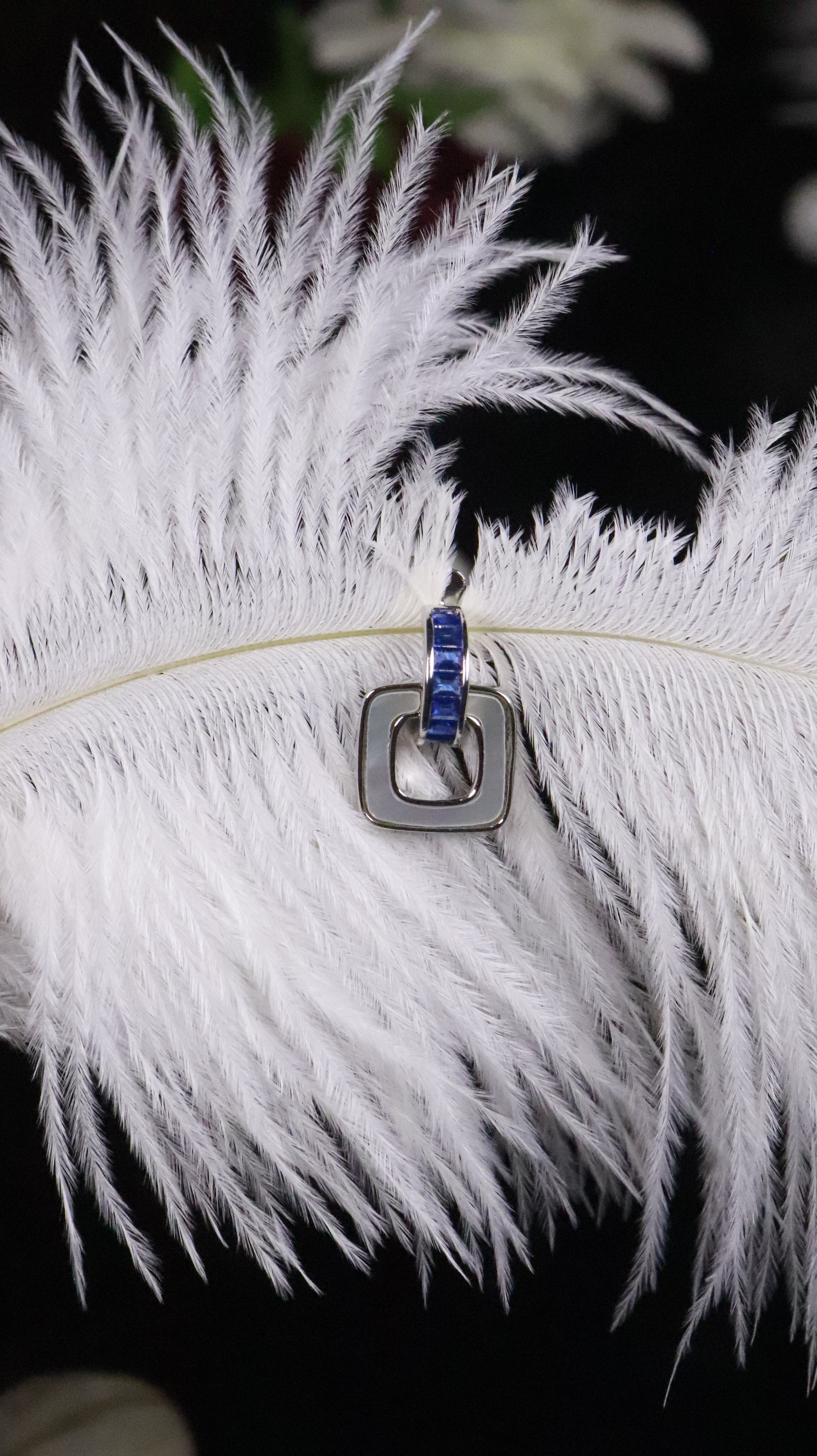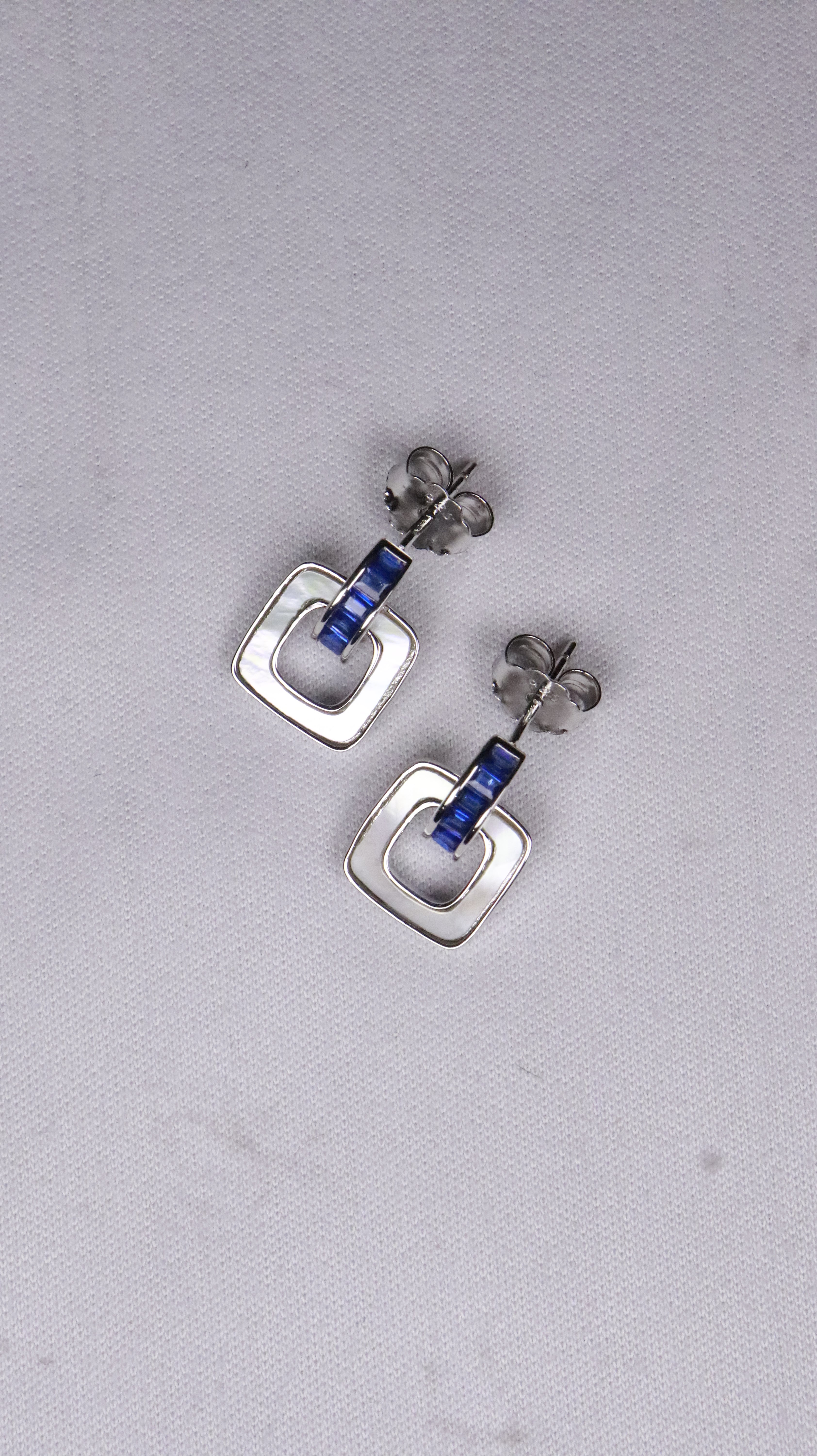 Made with 925 sterling silver. Cool square design and a touch of blue sparkle make it