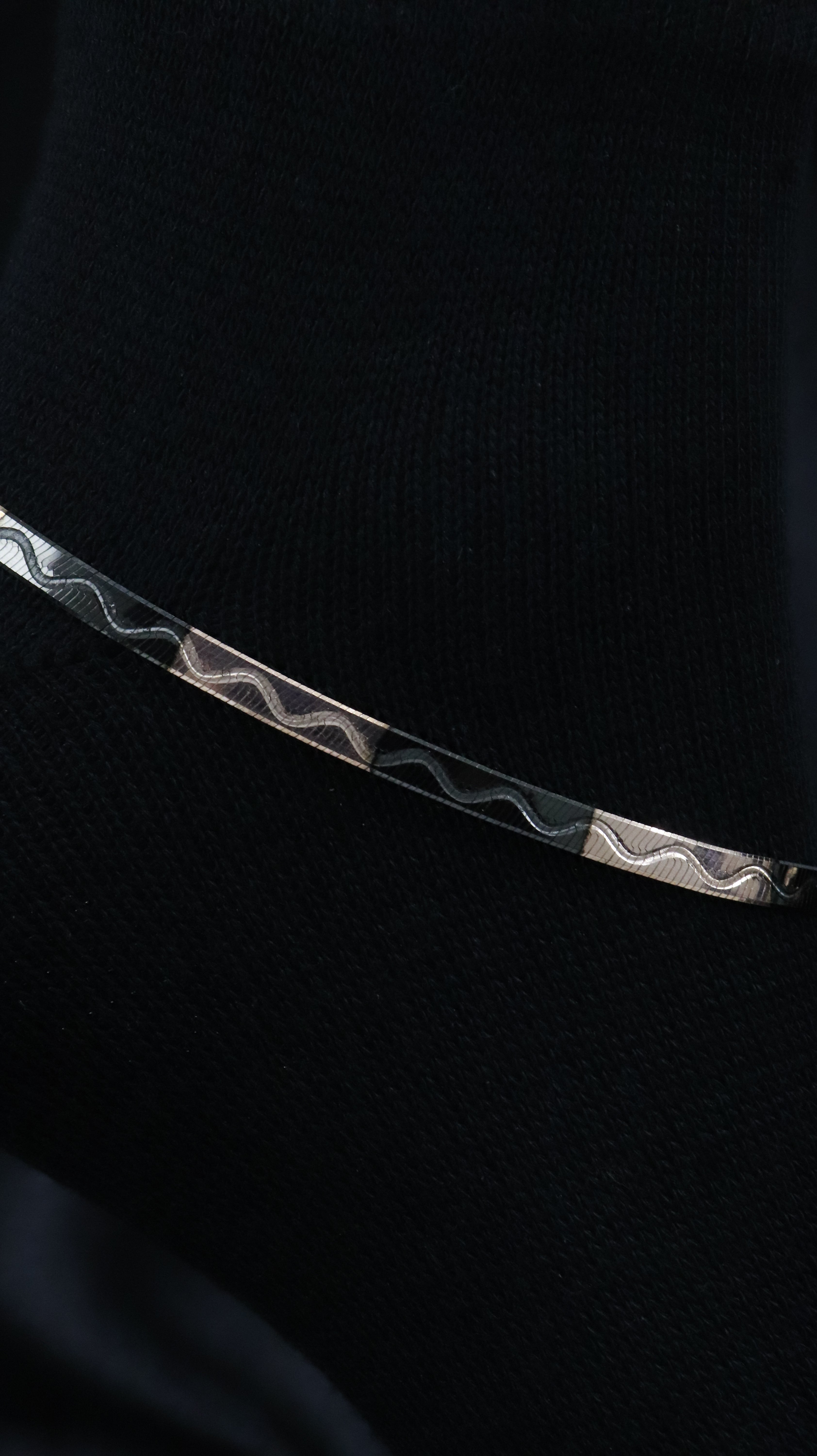 snake wave pattern running through the silver band. Simple, classy, and perfect for daily