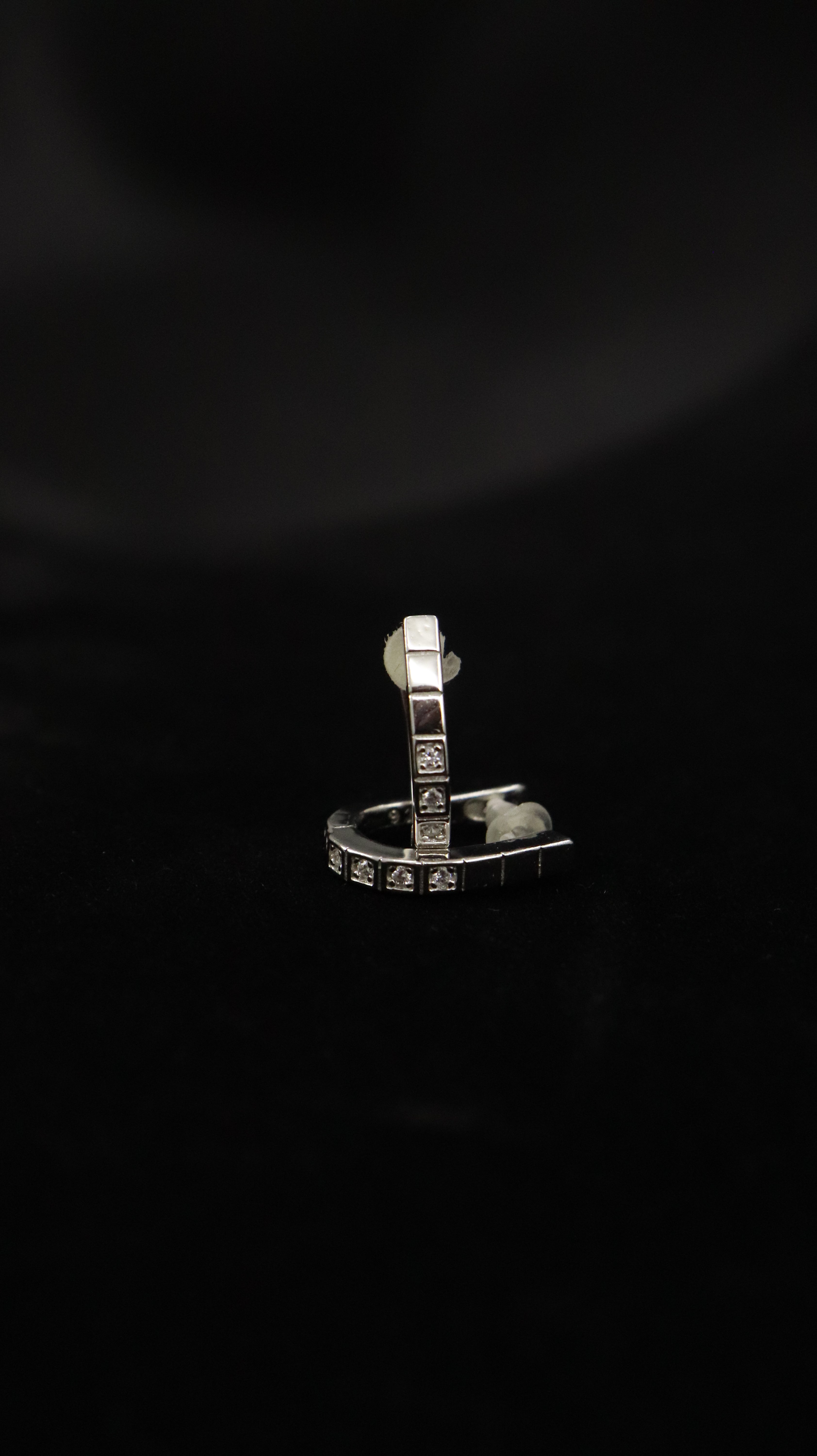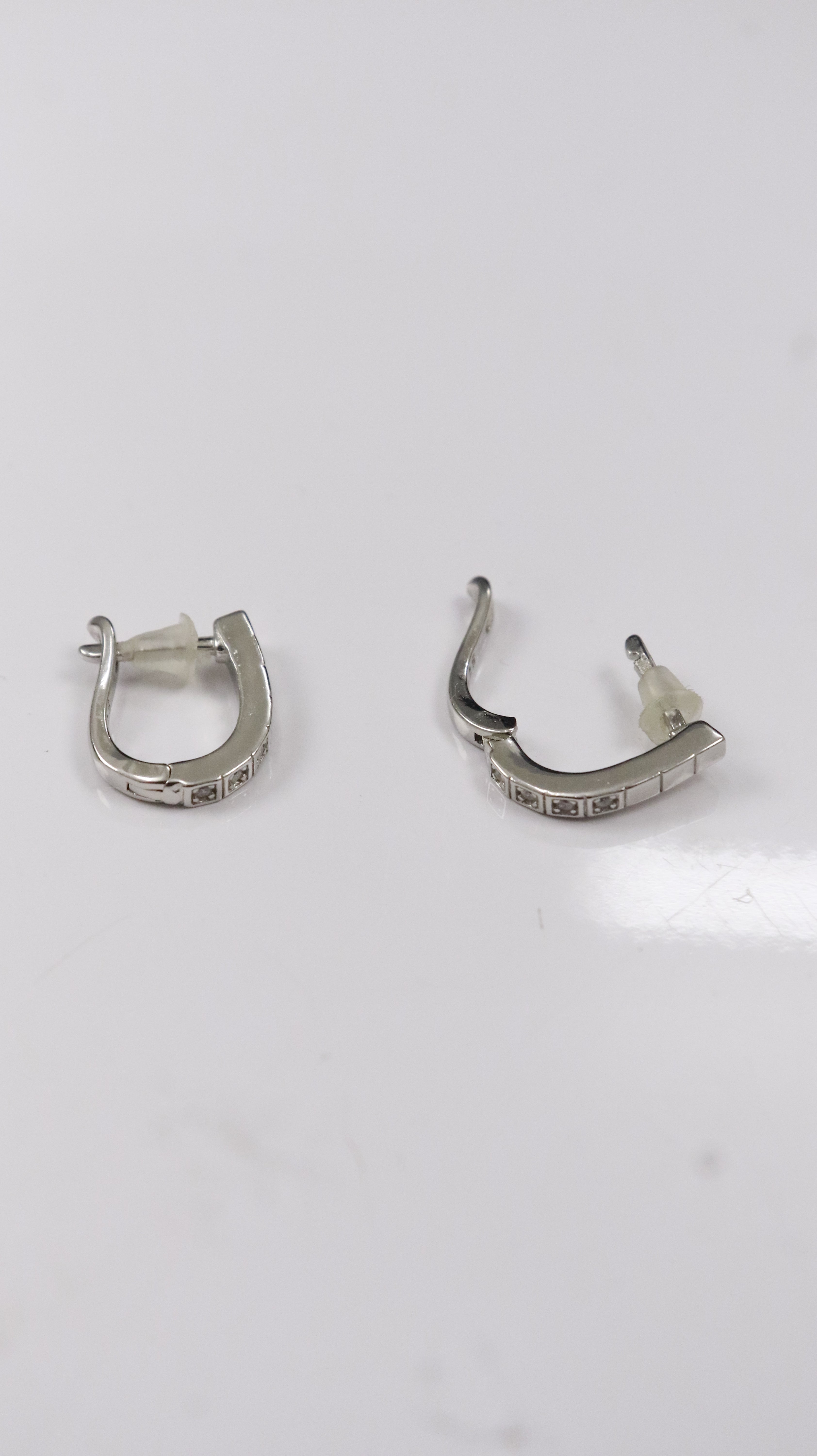 These earrings come in a small curved huggy style with tiny square stones set neatly on 925 sterling silver.