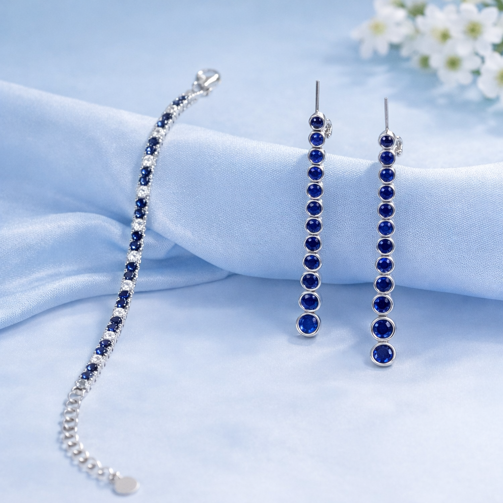 This combo features a beautifully matched bracelet and a pair of stud earrings, crafted in 925 sterling silver.