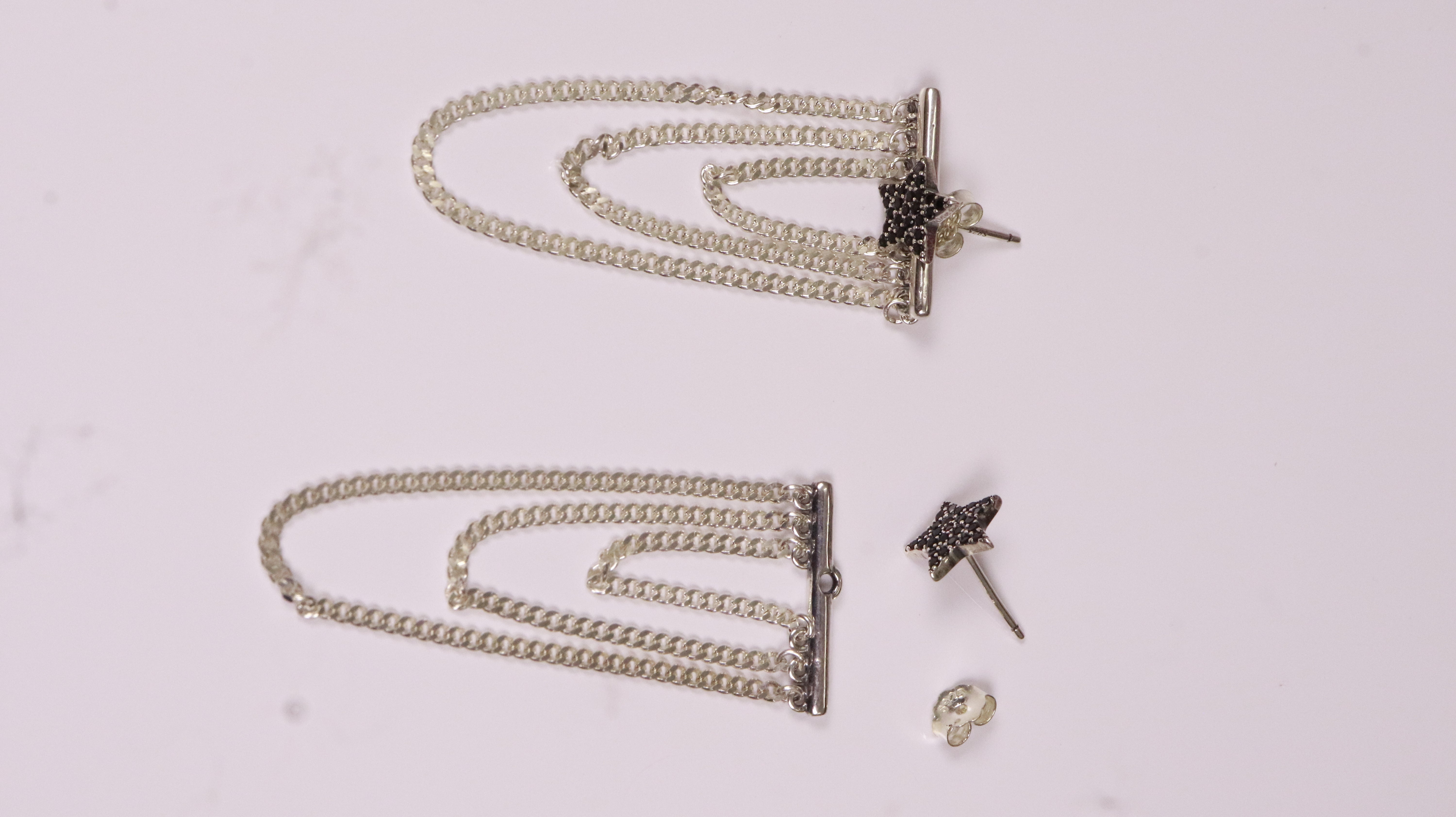 Design: Star stud, triple chain drop