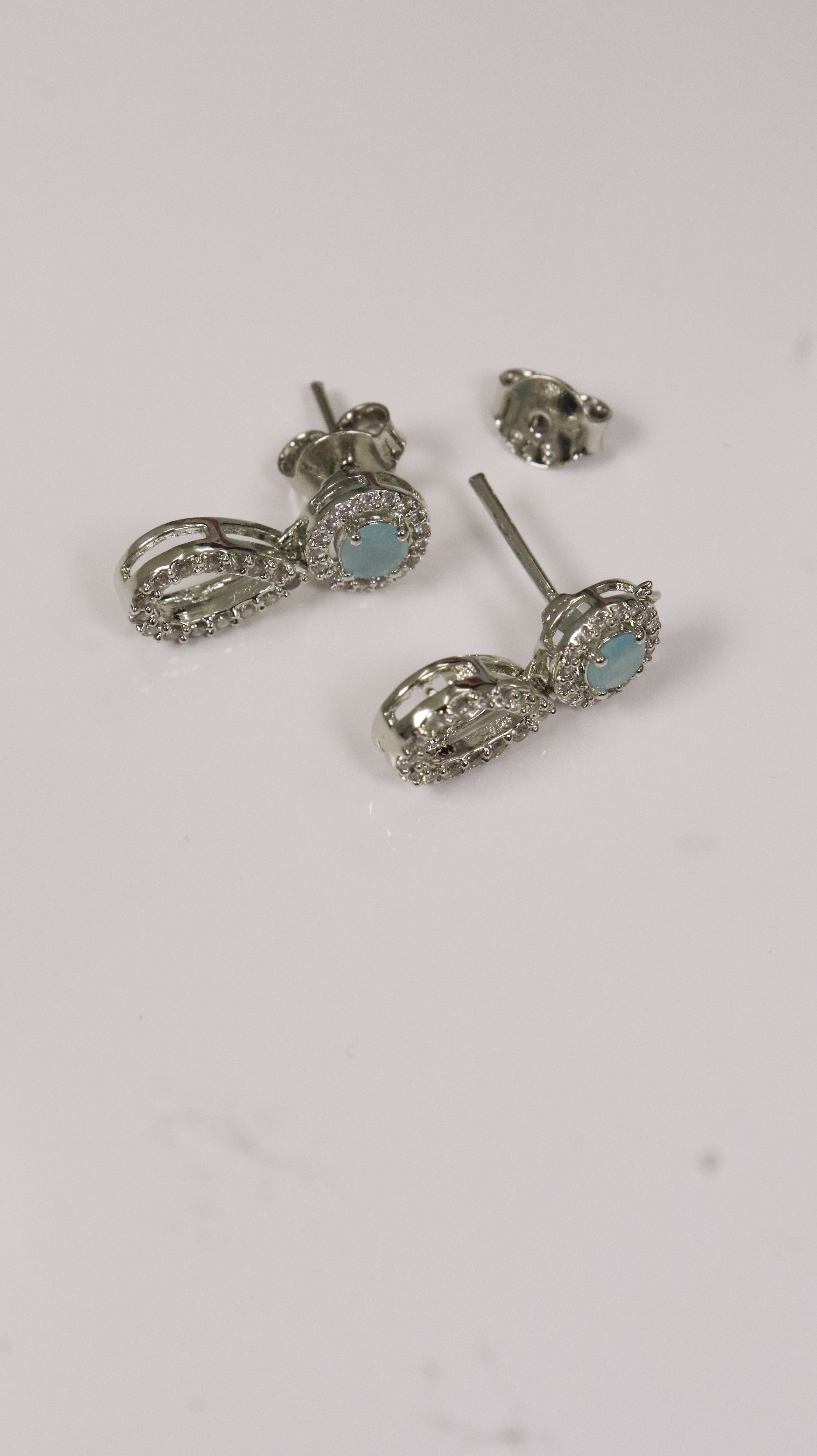 Round top stone with teardrop halo drop, crafted in 925 sterling silver. Light, classy and very graceful.
